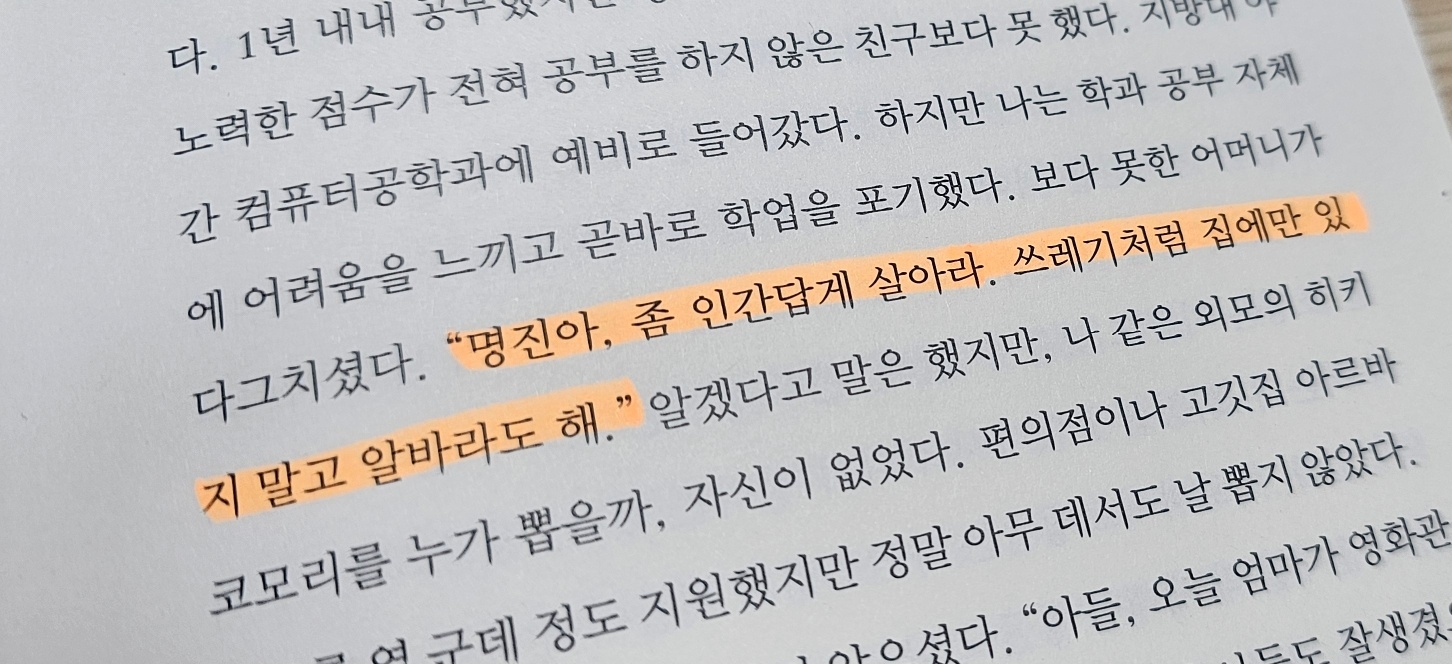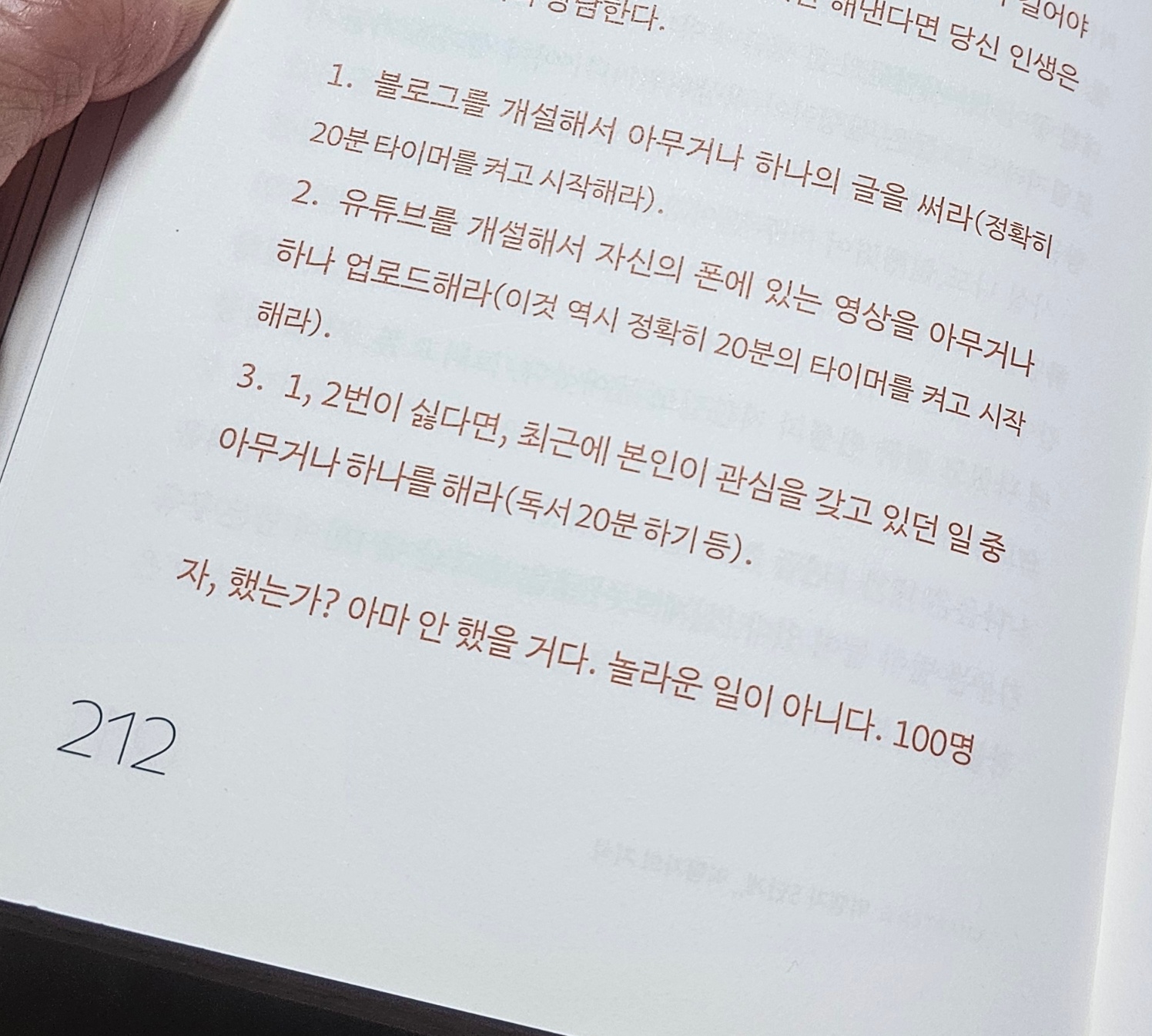 ‘말뿐인 자기 계발’이 아니라, 실천하고 변화한 사람이 들려주는 이야기라는 점에서 나는 이 책을 꽤 진지하게 받아들일 수 있었다.