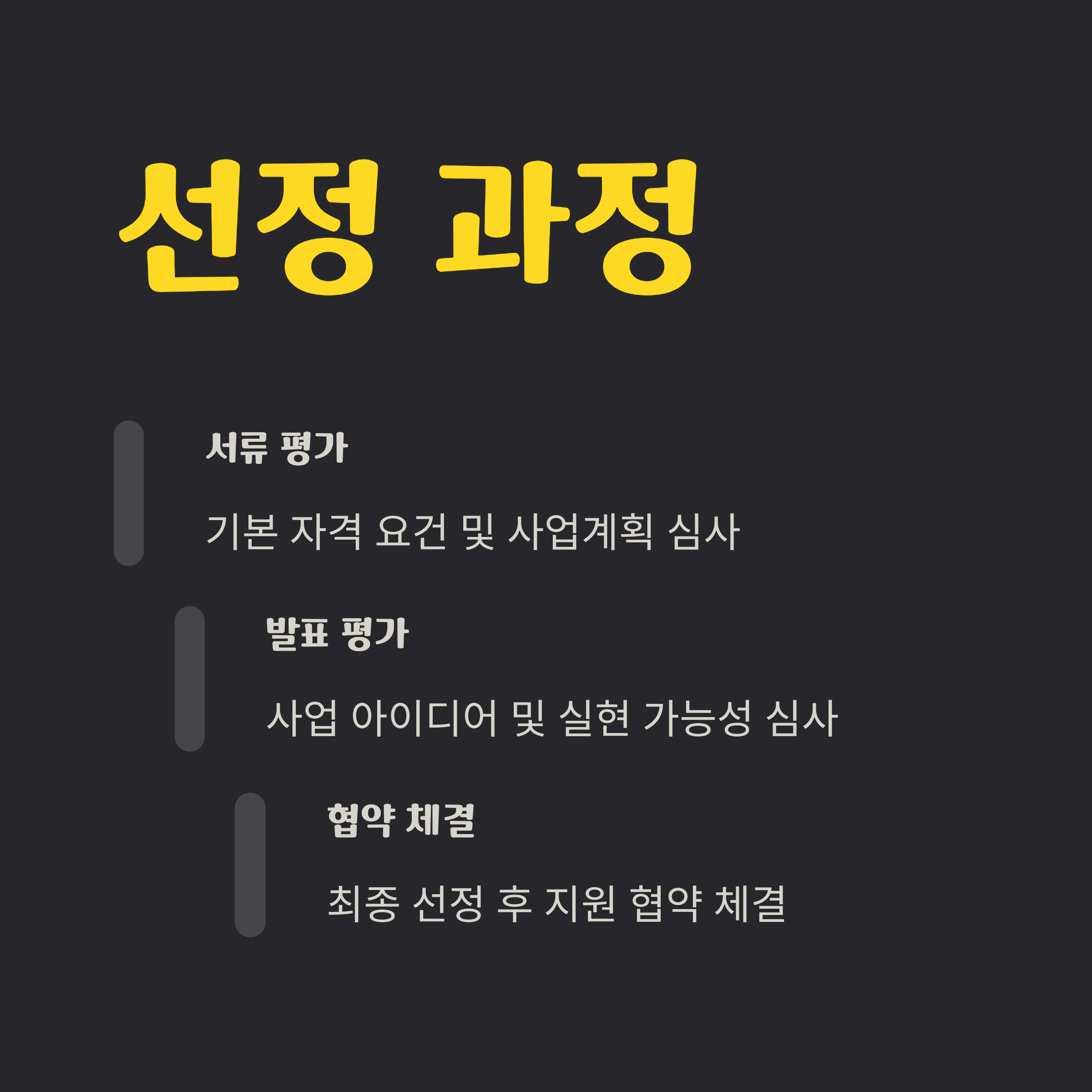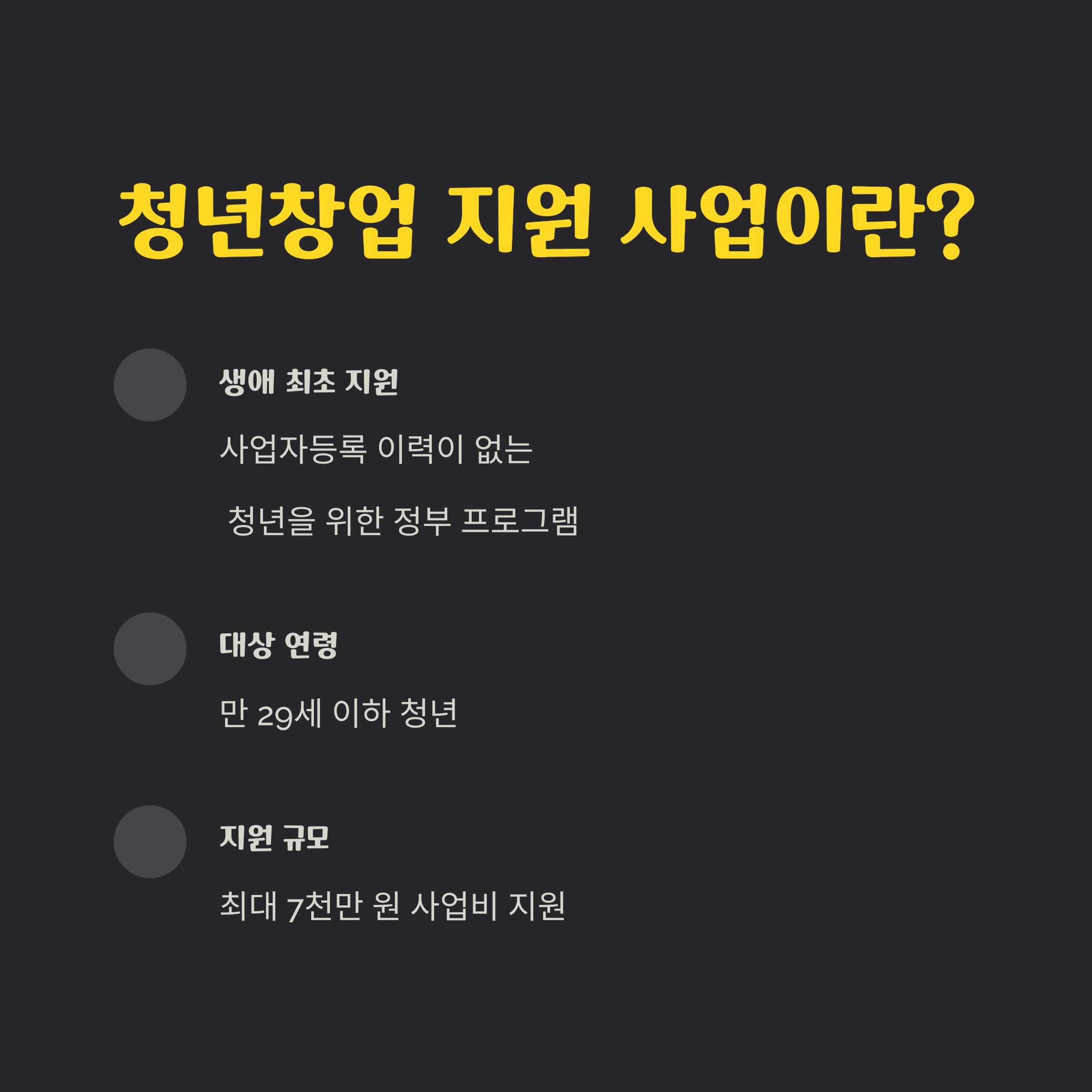 | 지원 자격 | 자금 규모 | 신청 절차 |