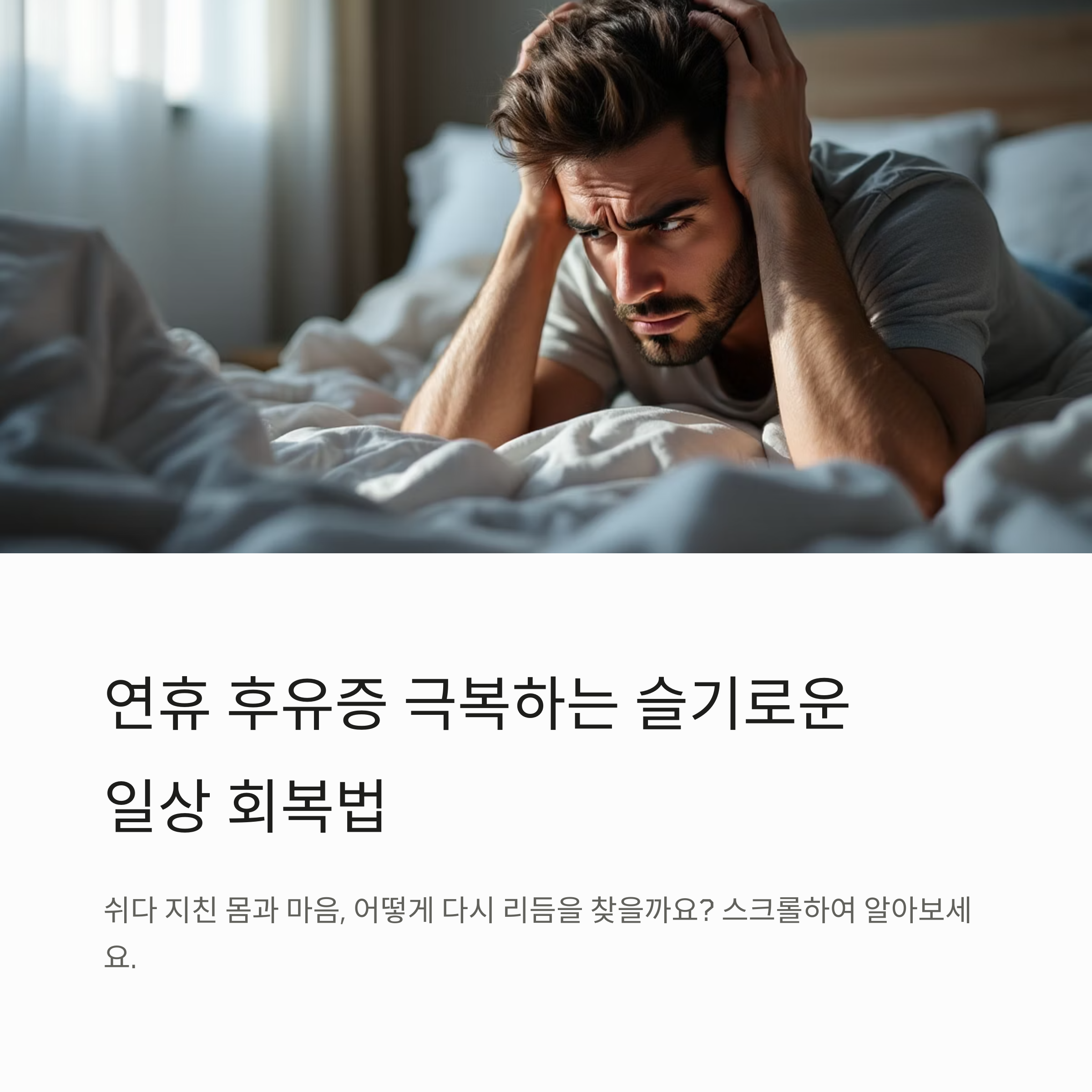 타인과 비교하기보다 스스로의 리듬을 존중하며 회복하는 자세가 연휴 후유증을 가장 슬기롭게 이겨내는 방법입니다.