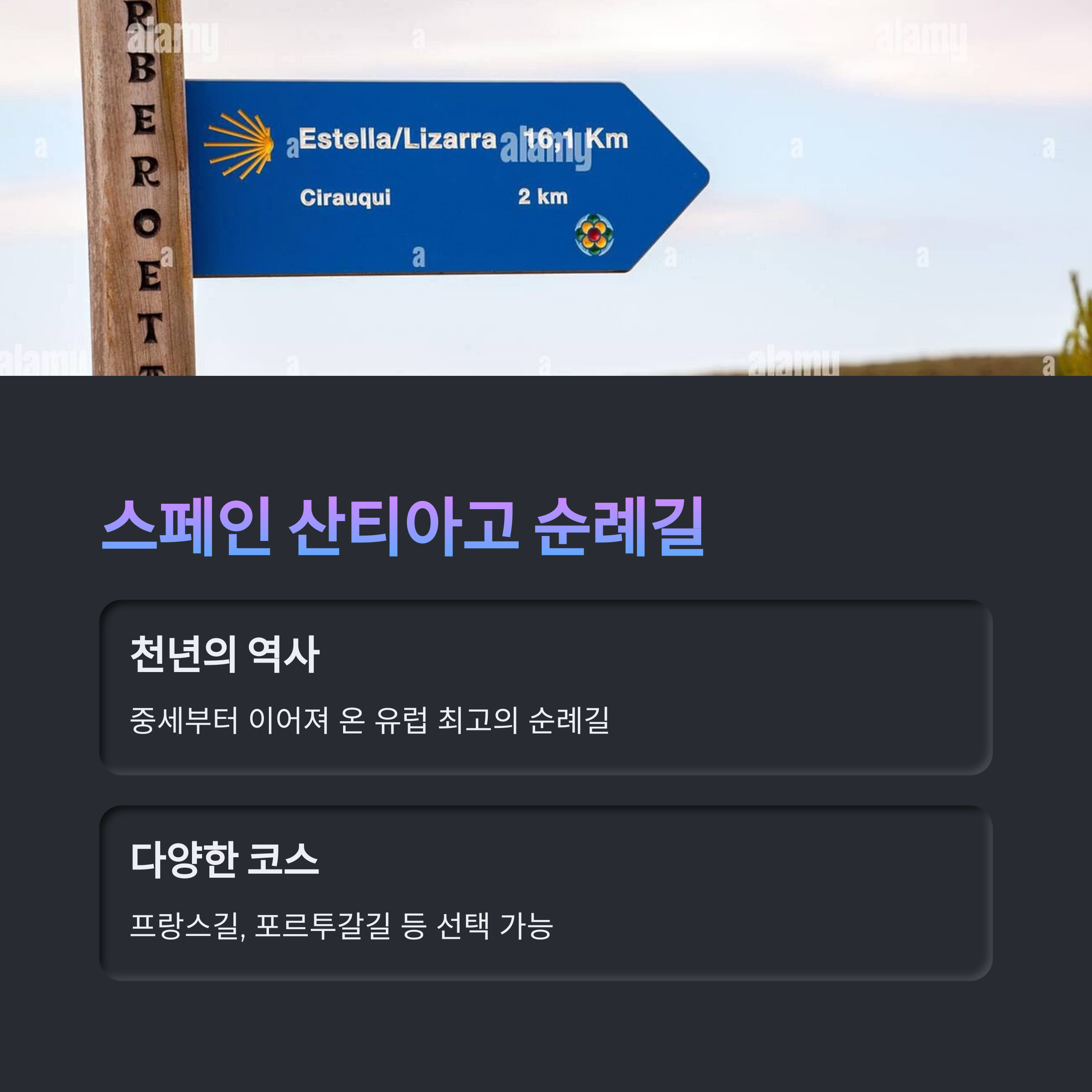 영혼의 순례길이라 불리는 이 길은 단순한 트레킹이 아니에요. 걷는 사람마다 마음속 짐을 내려놓게 만드는 마법 같은 여정이죠. 다양한 노선 중 가장 대중적인 프랑스길(French Way) 기준으로 최소 30일 정도 소요되며, 각 마을에 도착할 때마다 도장을 찍는 재미도 쏠쏠합니다.