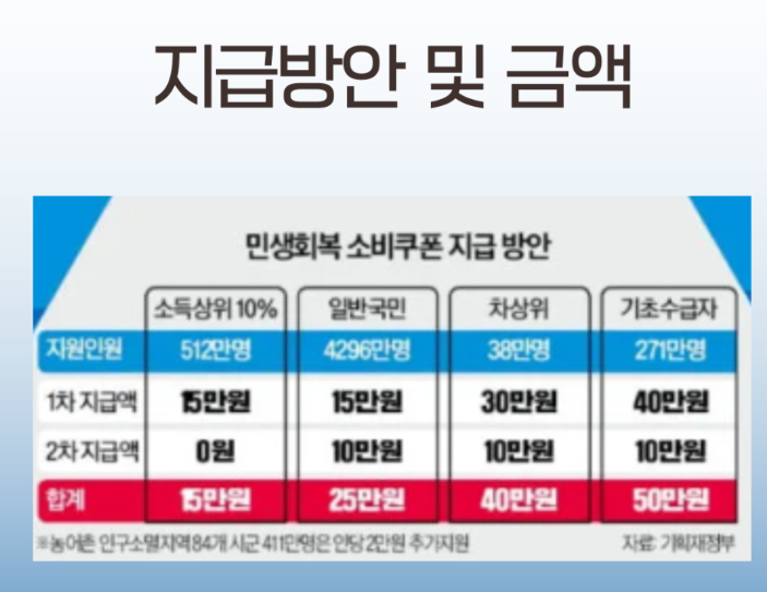 - 지급 시기: 이르면 2025년 7월 초 국회에서 추가경정예산안이 통과된 뒤 약 2주 후(7월 중순)부터 1차 지급이 시작될 예정입니다