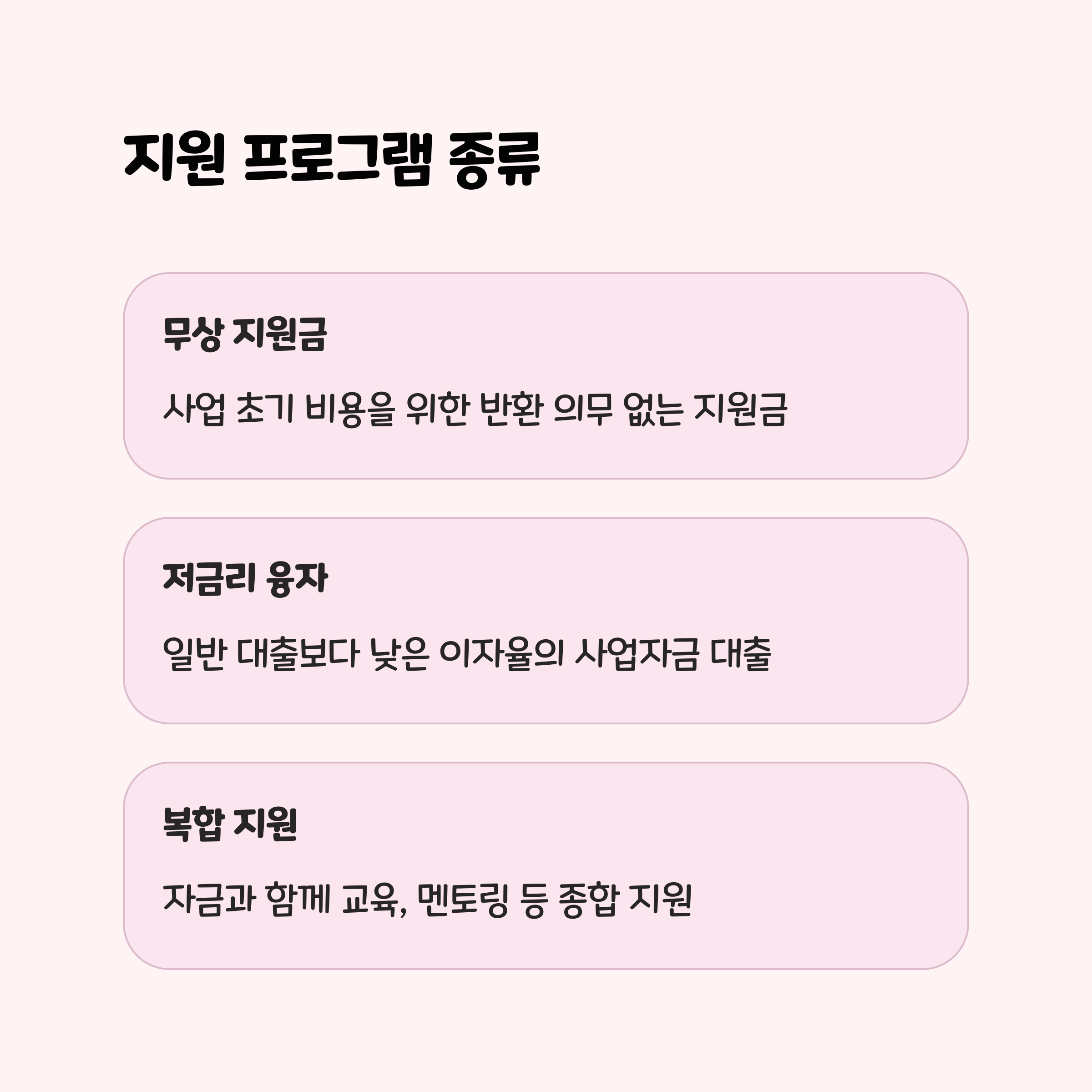 | 시제품 제작, 마케팅, 공간 임대 등 활용 가능 | 청년전용창업자금만 약 3,000억 원 배정 | 학력, 성별, 지역 제한 없이 신청 가능 |