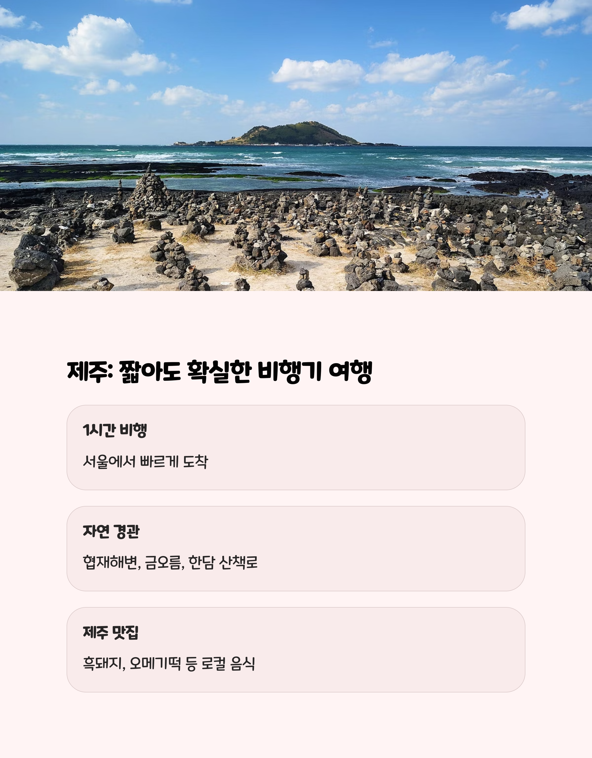 비행기만 타면 1시간 남짓이면 도착하는 제주도는