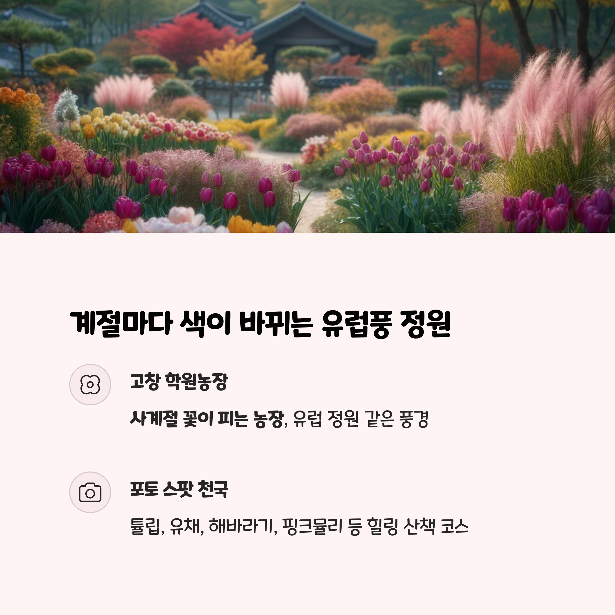| 지역별 명소 | 계절별 테마 | 감성 키워드 |