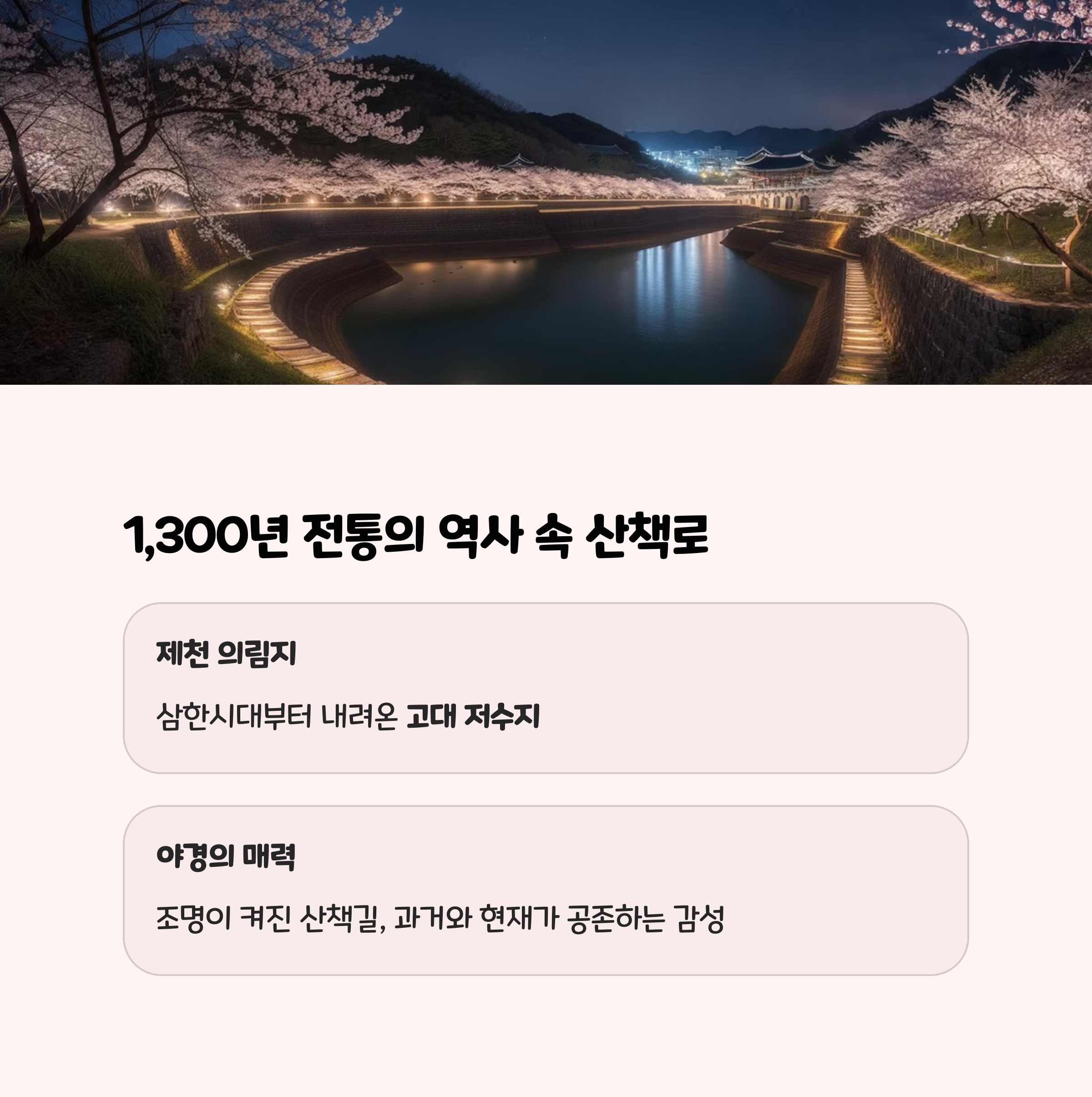 | 인스타그램보다 감동적인 풍경 체험 가능 | 계절에 따라 다른 매력을 경험할 수 있음 | 조용하고 감성적인 분위기를 선호하는 분에게 추천 |