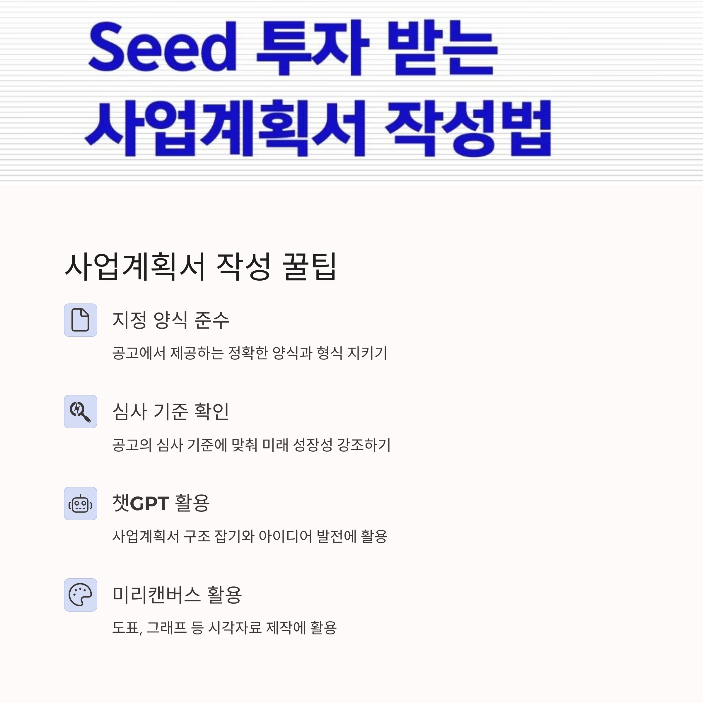 가장 유용한 툴은 바로챗GPT예요. 10년 전에는 자료 찾고 글 쓰는 게 정말 힘들었는데, 지금은 챗GPT가 많이 발전해서 사업 계획서골자를 짜는 데 큰 도움을 받을 수 있어요. 내용을 그대로 복사해서 쓰면 안 되지만, 아이디어를 얻거나 구조를 잡을 때 활용하면 좋겠죠. 또한,미리캔버스같은 디자인 툴도 사업 계획서 작성에 도움이 돼요. 사업 계획서에는 글뿐만 아니라도표나 그래프 같은도식화가 많이 들어가는데,미리캔버스로 이런 시각 자료를 예쁘게 만들 수 있답니다. 이런 툴들을 활용하면 좀 더 쉽고 보기 좋은 사업 계획서를 만들 수 있을 거예요.