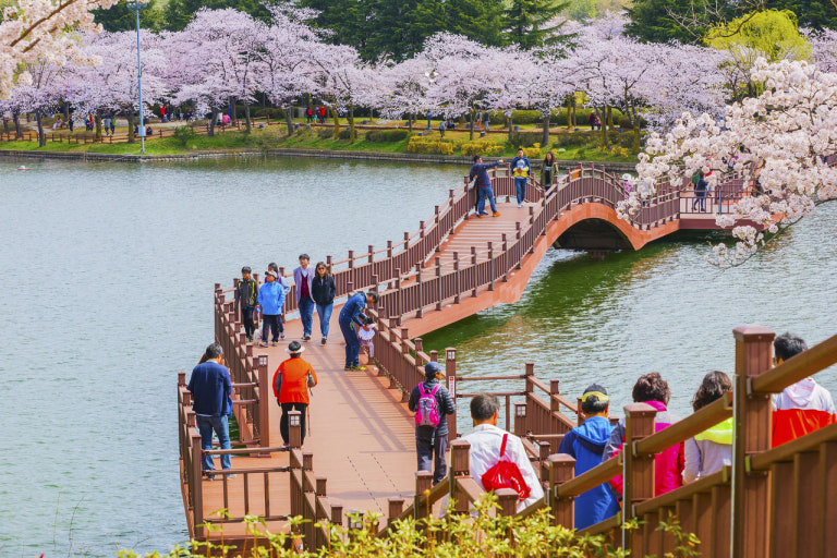 한국의 대표 벚꽃 명소! 5월 초까지도 화려한 벚꽃을 볼 수 있어요. 드넓은 벚꽃 터널을 걸으면 봄을 온몸으로 느낄 수 있습니다.